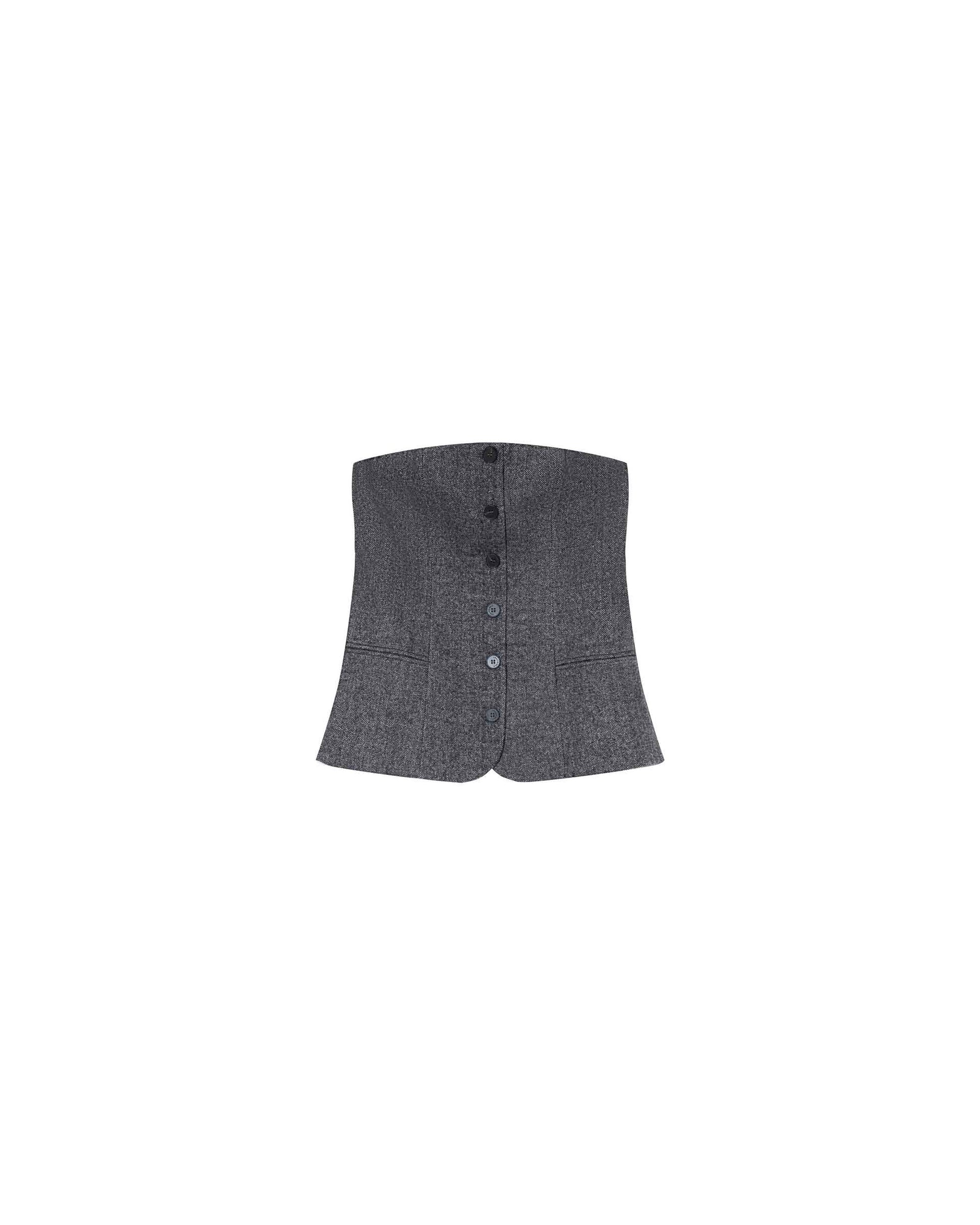 Confectionné en laine mélangée, le bustier ajusté TANDEM est une pièce affirmée et sophistiquée. La coupe ajustée sublime les courbes féminines et dessine une silhouette structurée et élégante. Le modèle présente de fausses poches ainsi qu'une fausse patte de boutonnage sur le devant. Le bustier en laine TANDEM a un élastique au dos et une fermeture zippée sur le côté qui lui confèrent confort et praticité.